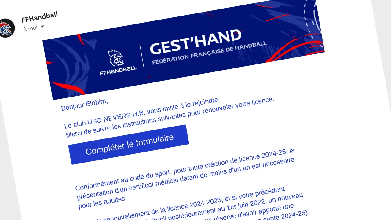 Choisissez ou vérifiez avec soin le type de licence (Hand à 7, Loisir, ParaHand, BabyHand, Dirigeant).